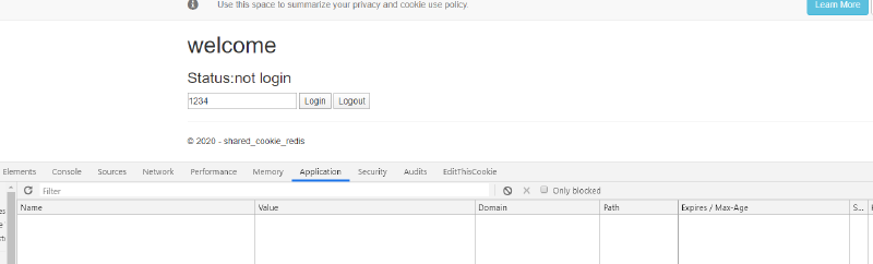 先將網站透過 docker run 起來,並於網站登入,產生 cookie