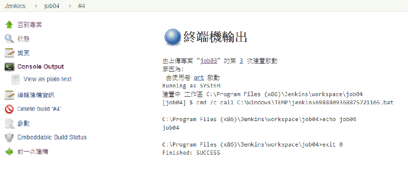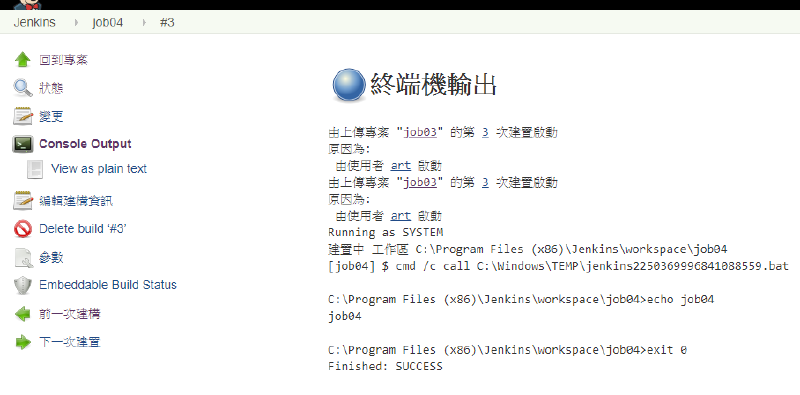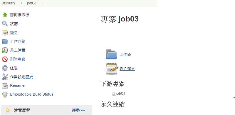 建立 Job03、Job04 兩個任務,其中 Job03 設定建置後動作:建置其他專案