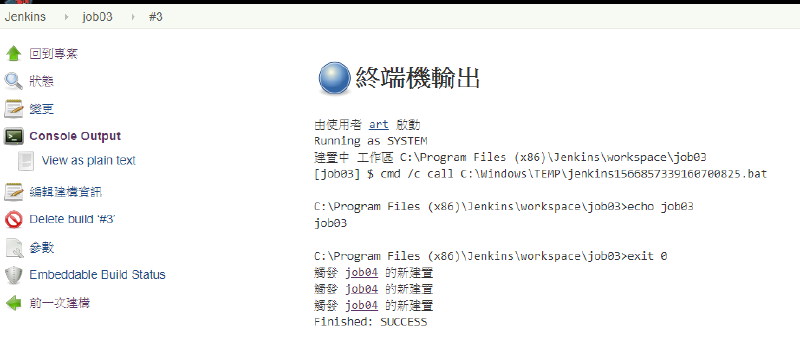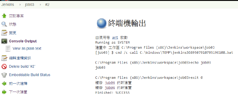 這樣執行 Job1 之後,就會自動觸發 Job2