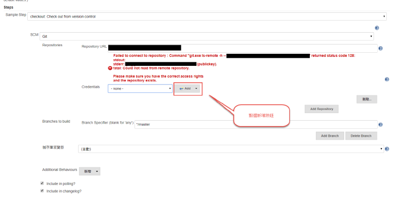 origin/develop,也可事後利用參數化建置,用變數取代掉 credentialsId會因為 jenkins 主機上建立而不同,需要依照自己的情況帶入識別碼