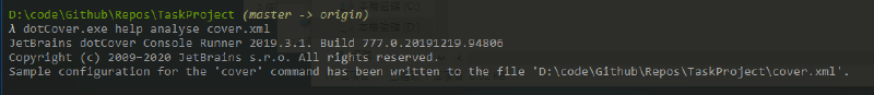 可透過dotCover.exe help analyse cover.xml 指令產生一個範例設定檔,將正確設定填入即可