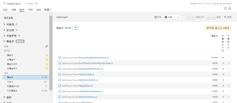 依照先前的步驟,應該可以看到一些指標數據,但是在單元測試的覆蓋率應該都是看不到的,因為 sonarQube 還必須要經過其他的方式取得單元測試的數據才能正確顯示,更詳細一點的文件可以參考官方文章、C# Plugin,這兩篇文章的內容大致上就是說明了一下官方建議的做法,有興趣可以研究一下