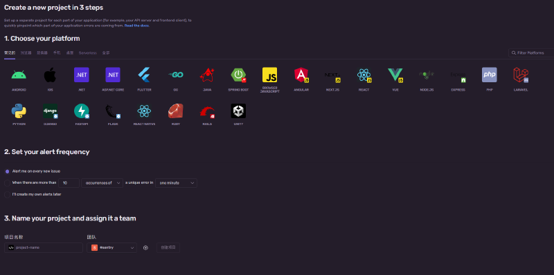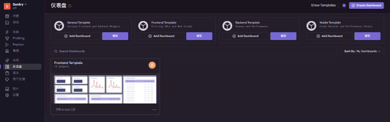 sentry 的儀錶板#