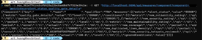 curl -u squ_302e77414cbcfd425a22bc0aebb67c7323e39c1e: -X GET "http://localhost:9090/api/measures/component?component=projectKey&metricKeys=alert_status,quality_gate_details"