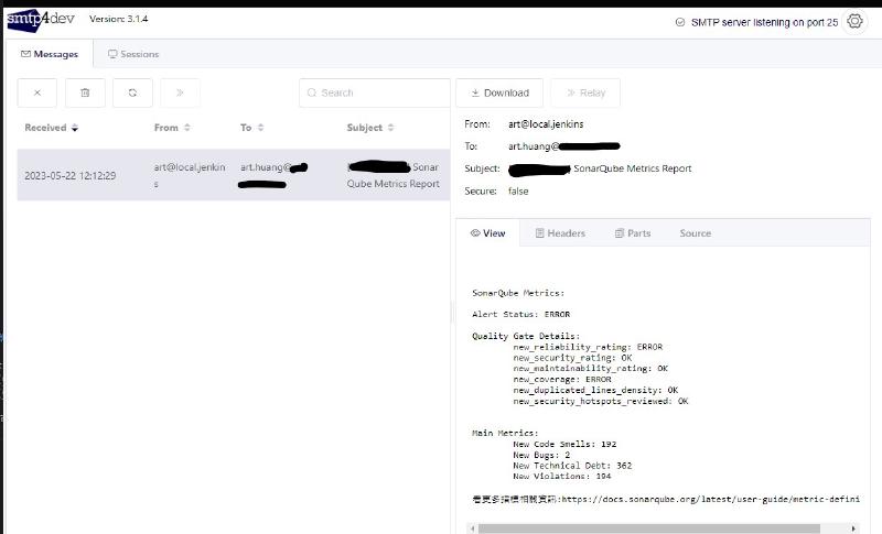 這邊我的想法是不需要取得很細節的東西,因為我們在 sonarqube 都有設定一個質量閥的東西,如果專案沒有通過我們設置的質量閥,表示有一些東西需要被關心,此時才需要去了解細節,除此之外,只要品質是夠的,也不需要收到通知信件